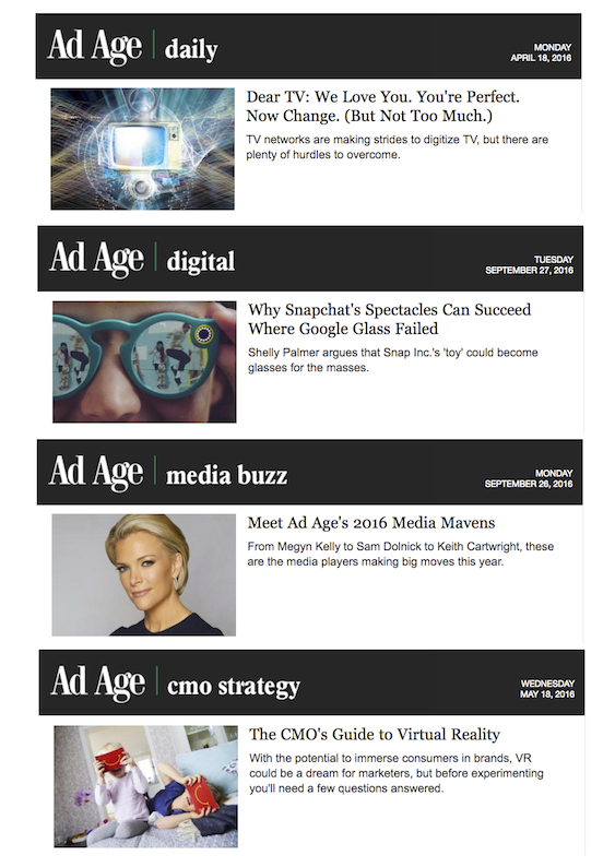 As web/newsletter editor, created and published up to four newsletters daily (Daily, Digital, Media Buzz; CMO Strategy and Agency News weekly) and up to 18 weekly to 692,000 subscribers.