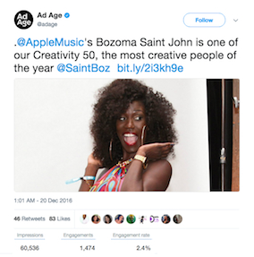 One of the highest performing posts on Ad Age's Twitter account in December 2016. Created post in SocialFlow, wrote copy and subhead, scheduled publishing and monitored engagement.