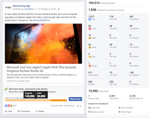 One of the highest performing posts on Ad Age's Facebook page in October 2016. Created post in SocialFlow, wrote copy and subhead, scheduled publishing and monitored engagement.