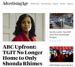 * * Ad Age reach statistics as per 2017 Media Kit. TiVo (Rovi Corporation) reach statistics unavailable. Uncorked and Snooth Wine Buyer's Guide reach statistics unavailable. Snooth reach statistic as per company profile. Patch reach sourced from Quantcast, estimate at May 2011. Oxfam Great Britain Talking Books reach statistic unavailable. Martha Stewart Living circulation as per MSLO media kit. Weight Watchers Magazine total paid circulation as per the title's 2012 media kit. Australian Women's Health circulation from the magazine's profile. All other magazine and newspaper circulation figures estimated as at time of employment, sourced from Australia's Audit Bureau of Circulations. All publishers listed as at time of employment.